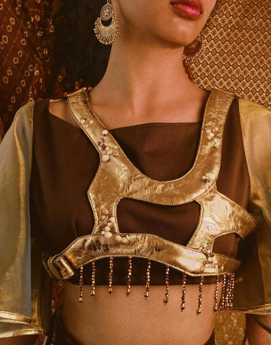 'MEMENTO' Embossed Faux Foil Leather Statement Harness